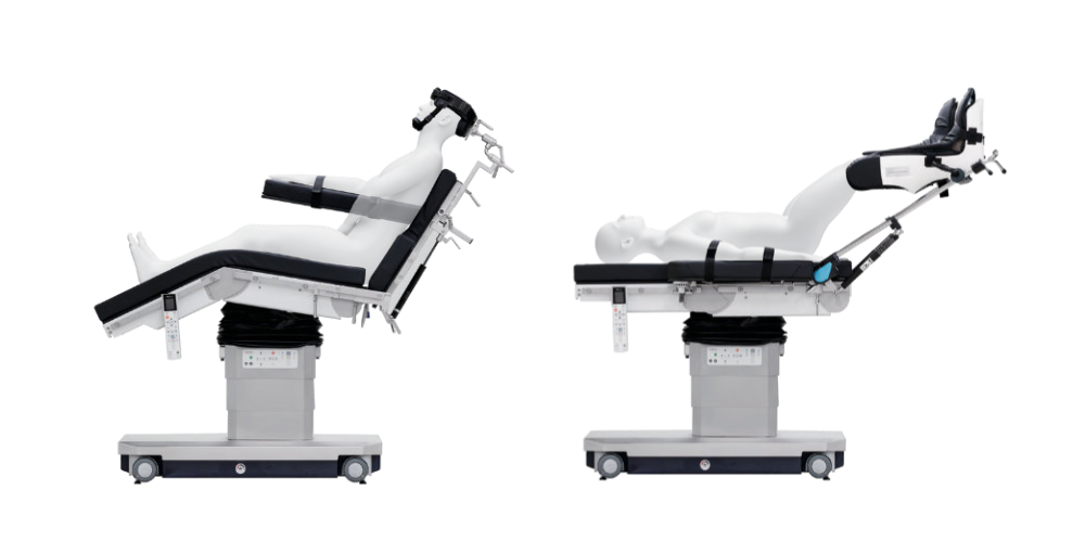 Beach chairs are specialized positioning modules that elevate the patient’s upper body into a semi-upright “beach chair” position, with integrated head and arm supports for enhanced stability during shoulder procedures.