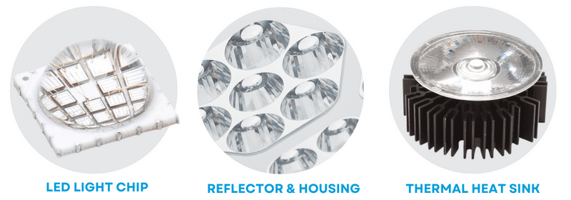 More specifically, reliable LED lights need to have metal heat sinks with wings to route and store the heat away from the key components while not interfering with the medical work area. Products that cut costs will use less expensive components with fans or plastic heat syncs which are much more likely to fail and reduce the life of the light chip.