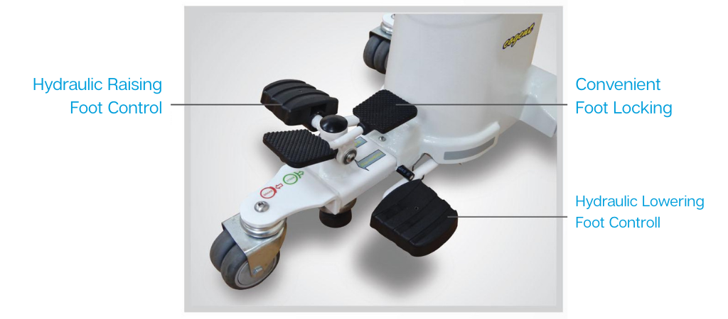 - Foot-controlled hydraulic height adjustment for easy ascending and descending
