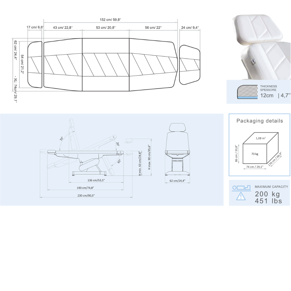 - Advanced Medical Grade Fabric: Fire retardant class 1IM, “Azo” free, antibacterial, antifungal, waterproof high-tech upholstery