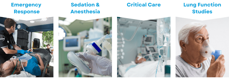 Capnographs measure the extent to which a person is breathing normally and gas is being exchanged in the lungs properly.  This leads to many practical uses in the field of medicine.  The four most common scenarios are:
